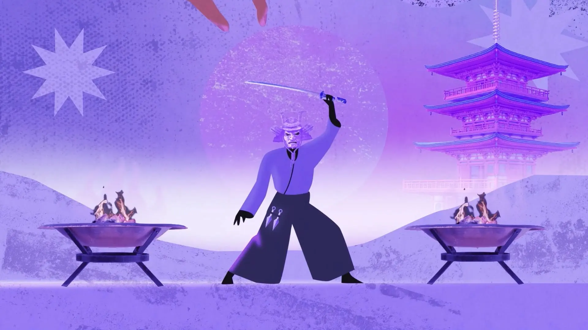 We used mixed media animation blending historic Japanese imagery—samurai, temples—with modern gaming visuals to bridge the real and meta worlds. Animated characters, game items, and coin graphics simplified complex blockchain concepts into relatable steps: buy ENJ tokens, mint NFT assets, trade between games, or melt items to recover value.